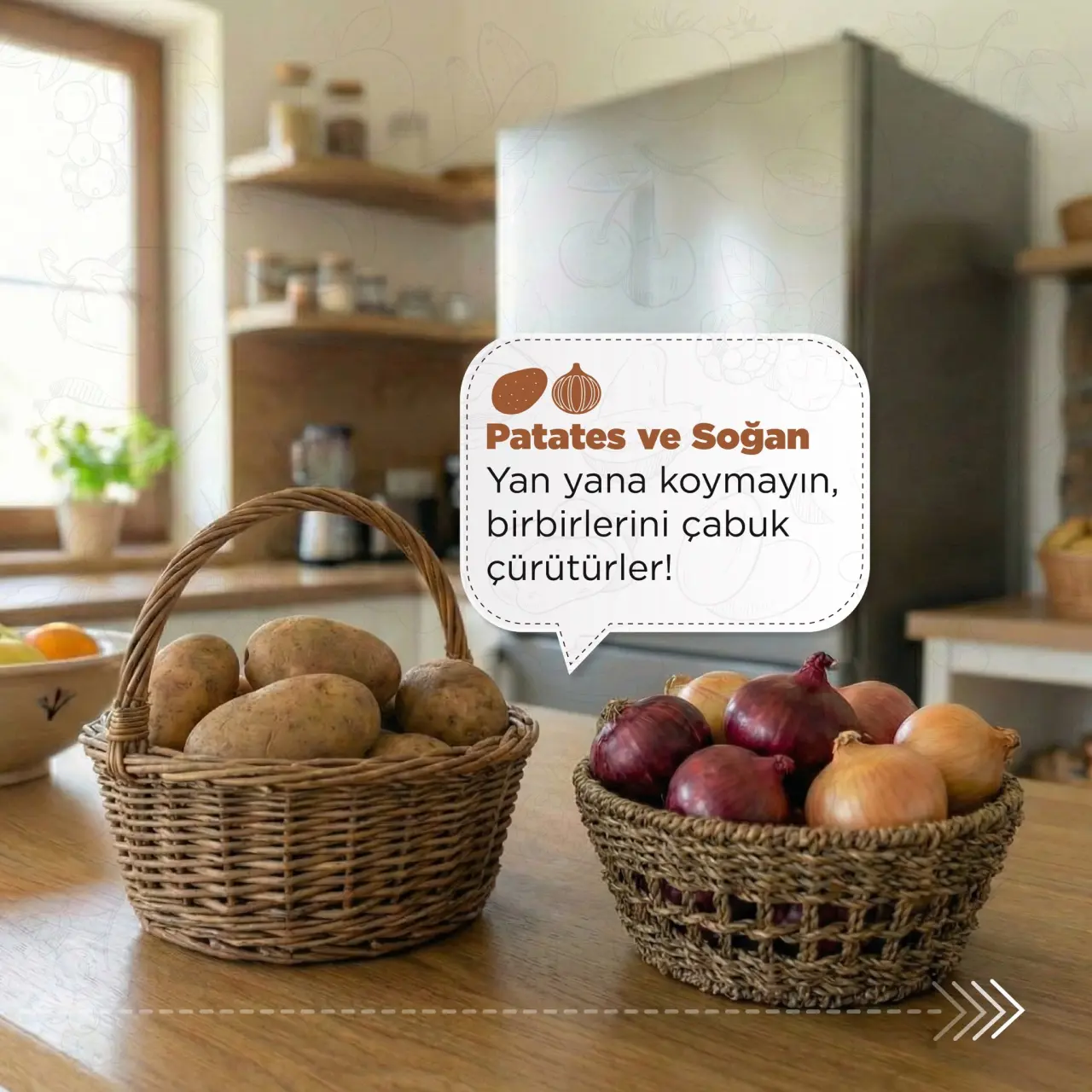T.C. Tarım ve Orman Bakanlığı, gıdaların doğru saklama koşullarına ilişkin bilgilendirici bir paylaşım yaparak hem lezzetin korunması hem de gıda israfının önlenmesine dikkat çekti. Paylaşımda, mutfakların vazgeçilmezi olan domates, patates, soğan ve yeşilliklerin hangi koşullarda saklanması gerektiği detaylarıyla anlatıldı.