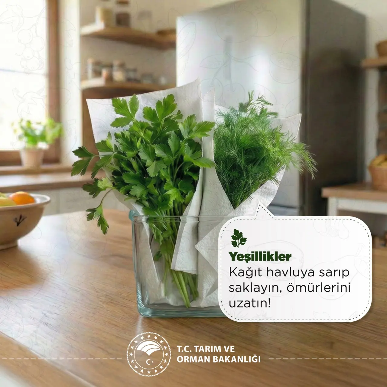 Yeşillikler (marul, maydanoz, roka vb.) ise tazeliğini koruması için buzdolabında, tercihen kağıt havluya sarılarak muhafaza edilmesi öneriliyor.
