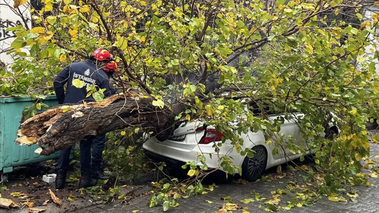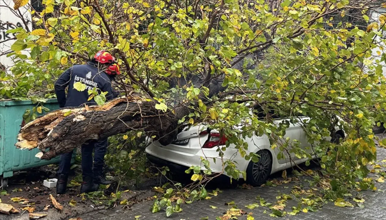 Keçeci Piri Mahallesi Okçular Sokak'ta yağışın ardından 34 EP 6183 plakalı otomobilin üzerine ağaç devrildi.