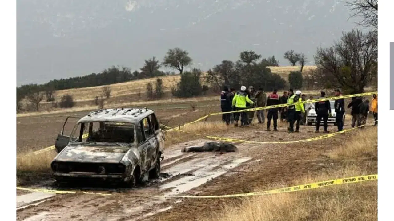 Yanan aracın yakınında bir erkek cesedi bulundu