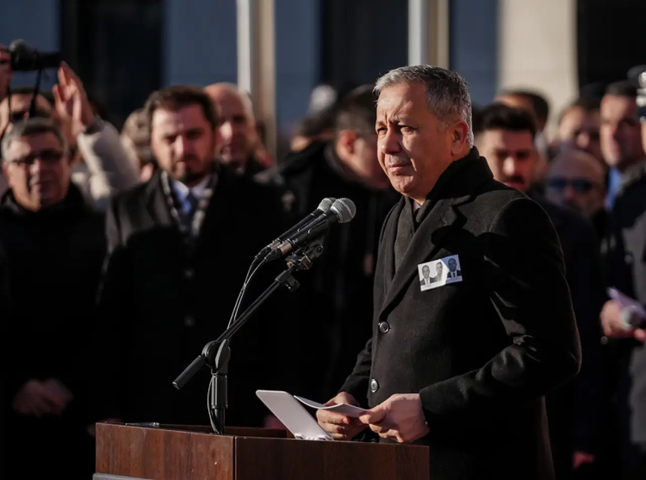 Şehit polis memurları için düzenlenen törende konuşan İçişleri Bakanı Yerlikaya, Külünk, Koçyiğit ve Pehlivan'ın "vatan toprağı ilelebet payidar kalsın" diye canından geçen nice yiğitler gibi şehitler kervanına katıldığını söyledi.