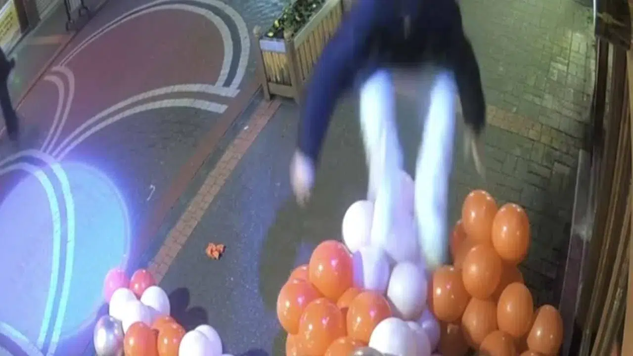 Olay, gece saatlerinde Hükümet Caddesi’nde meydana geldi. Bir kuyumcunun 14 Şubat Sevgililer Günü için iş yerini süslemek amacıyla astığı renkli balonlar, caddeden geçen kişi tarafından sökülerek yere atıldı. Bir tane balon alan şüpheli diğer balonları da üzerinde zıplayarak patlatırken, o anlar iş yerinin güvenlik kamerasına yansıdı.