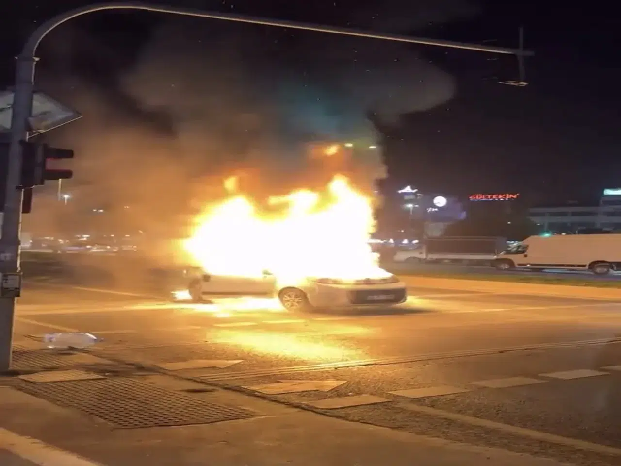 Yangın, saat 22.00 sıralarında Kordonboyu Yolu Turgut Özal Bulvarı'nda meydana geldi. Seyir halindeki hafif ticari aracın motor kısmında bilinmeyen bir nedenle çıktı. Yükselen alevler kısa sürede büyüyerek aracı tamamen sardı. Durumu fark eden sürücü araçtan indi. Çevredekilerin ihbarı üzerine olay yerine itfaiye ve polis ekipleri geldi. Polis ekipleri çevrede güvenlik önlemi alırken, yangın itfaiye tarafından söndürüldü. Hurda yığınına dönen aracın alev alev yandığı anlar çevredeki kişiler tarafından cep telefonu ile kaydedildi.