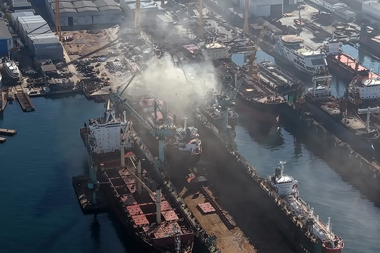 Tersaneler Caddesi'nde bulunan bir tersanedeki gemide henüz belirlenemeyen nedenle yangın çıktı.