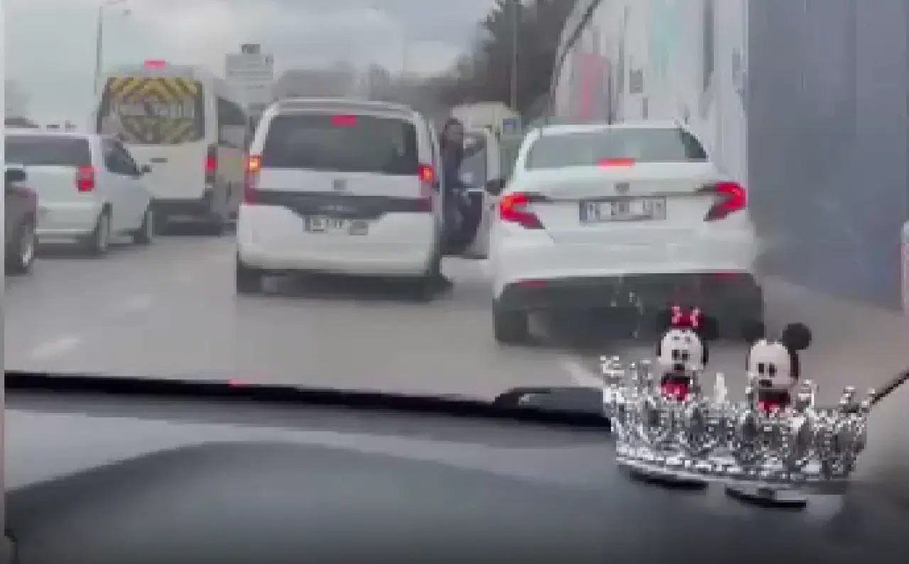 Olay, Osmangazi ilçesi Merinos Kavşağı'nda meydana geldi. 16 BNL 129 plakalı otomobil ile 16 AVV 308 plakalı hafif ticari aracın sürücüleri arasında 'yol verme' nedeniyle tartışma çıktı. Sürücü, hafif ticari aracı ile otomobilin önünü kesti, ardından aşağı inip yanındaki 2 kişi ile otomobil sürücüne yöneldi. Otomobil sürücüsünün camını açması ile 2 kişi, araç içine doğru yumruk savurdu. O anlar, diğer sürücüler tarafından kaydedildi.