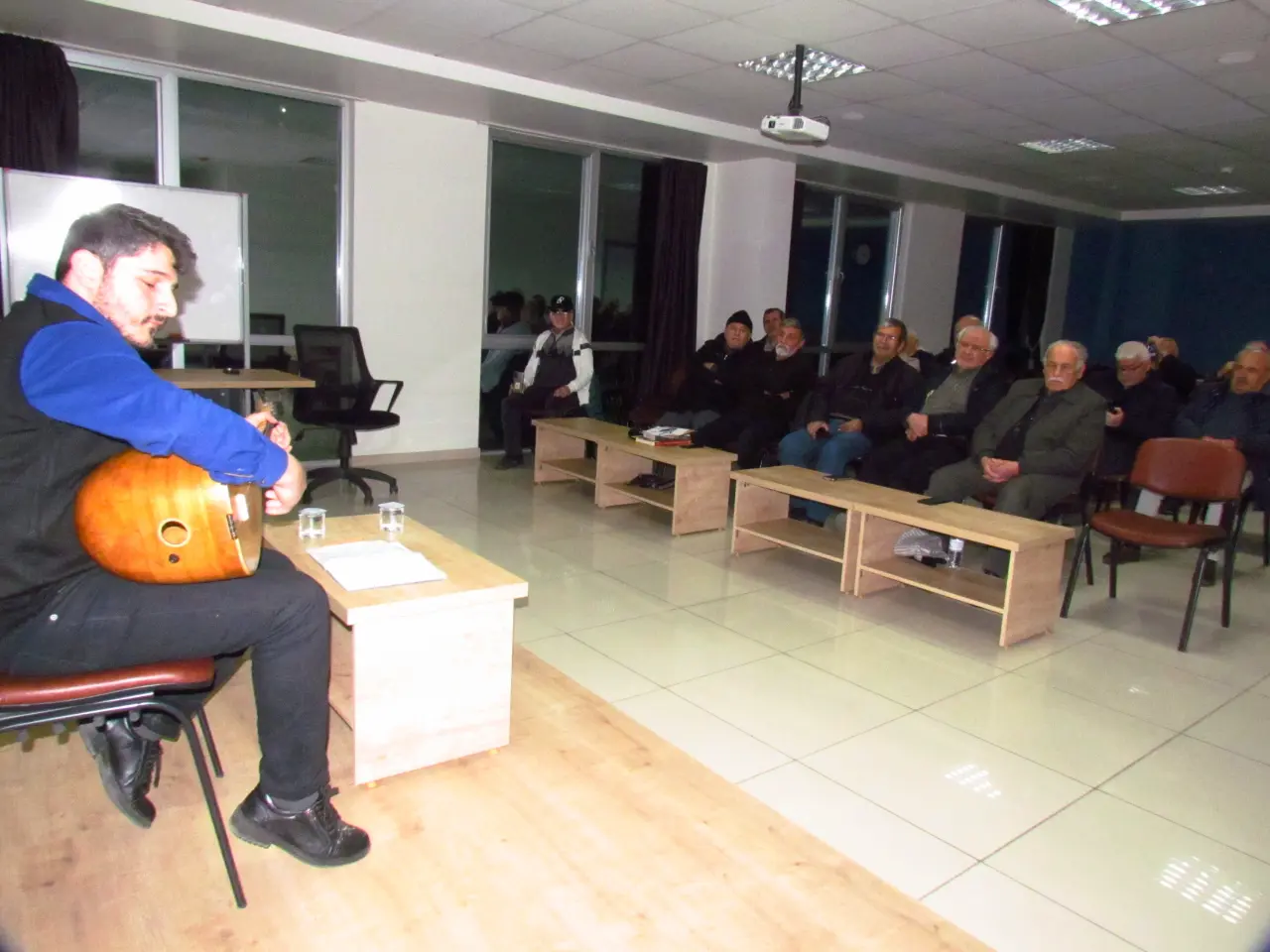 Müzisyen Bekir Deniz daha sonra bağlamasıyla Âşık Veysel, Abdurrahim Karakoç, Musa Eroğlu ve Zülfü Livaneli’nin eserleri başta olmak üzere davetlilere bir müzik ziyafeti sundu. Program Aydınlar Ocağı Başkanı Dr. Mustafa Güçlü ve yönetim kurulu üyesi Tayyar Yıldırım’ın sanatçı Bekir Deniz’e kitap ve belge takdimi ile son buldu.