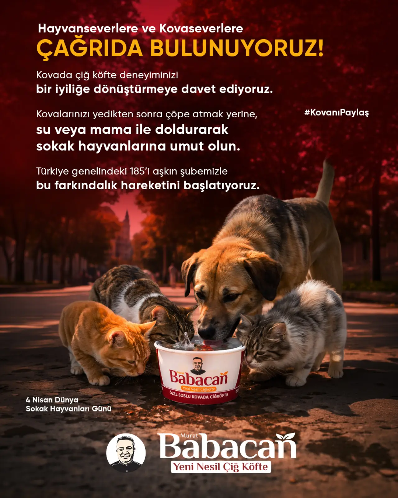 Türkiye genelinde 195’ten fazla şubesi bulunan Babacan Çiğ Köfte’nin bayi ağı da sürece dahil olarak, birçok noktada mağaza önlerinde su ve mama alanları oluşturmaya başladı. Böylece kullanıcılar tarafından benimsenen bu yaklaşımın, kısa sürede geniş bir saha karşılığı bulduğu görülüyor.