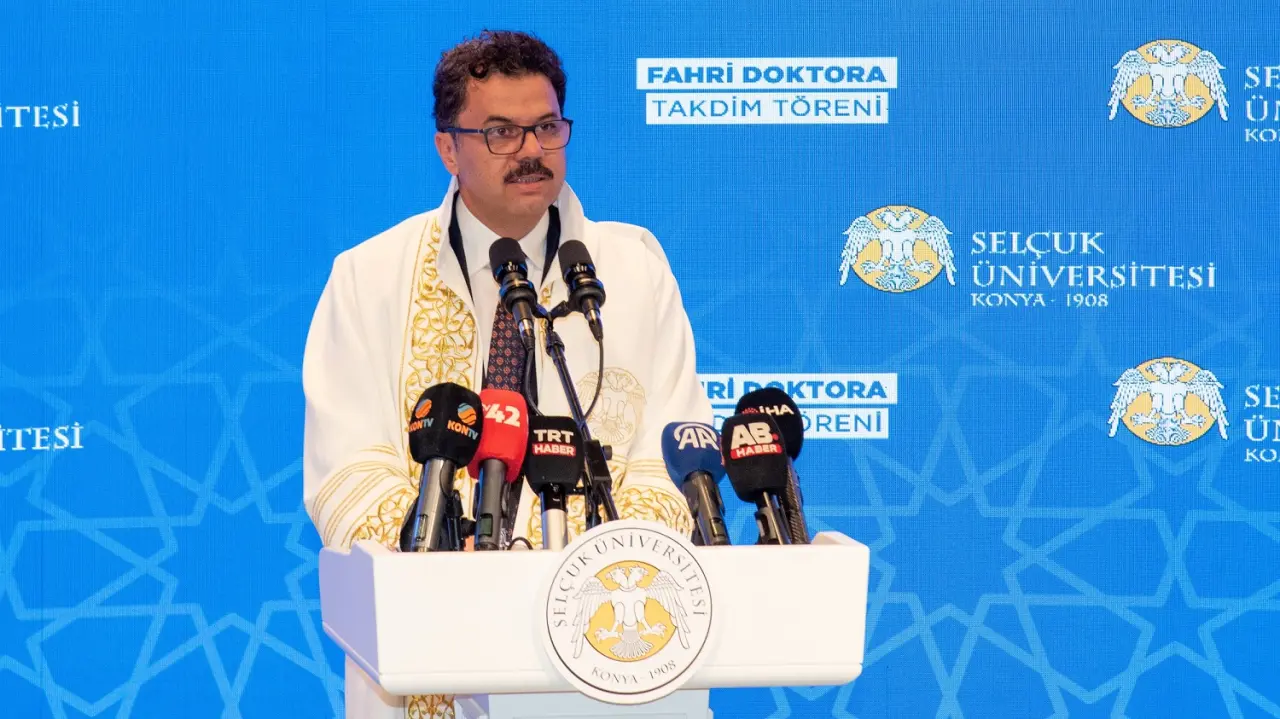 Sultan Alparslan Kültür Merkezinde düzenlenen Murat Kurum’a Fahri Doktora Takdim Töreni’nin açılışında konuşan Rektör Prof. Dr. Hüseyin Yılmaz, “Cumhurbaşkanımız Recep Tayyip Erdoğan’ın liderliğinde şekillenen Türkiye Yüzyılı vizyonu, bugünün değil; yarının Türkiye’sine duyulan güçlü inancın bir yansımasıdır. Selçuk Üniversitesi olarak bu vizyonun gerektirdiği bilimsel, teknolojik ve toplumsal atılımları hayata geçirmeyi temel bir sorumluluk olarak görüyoruz” dedi.