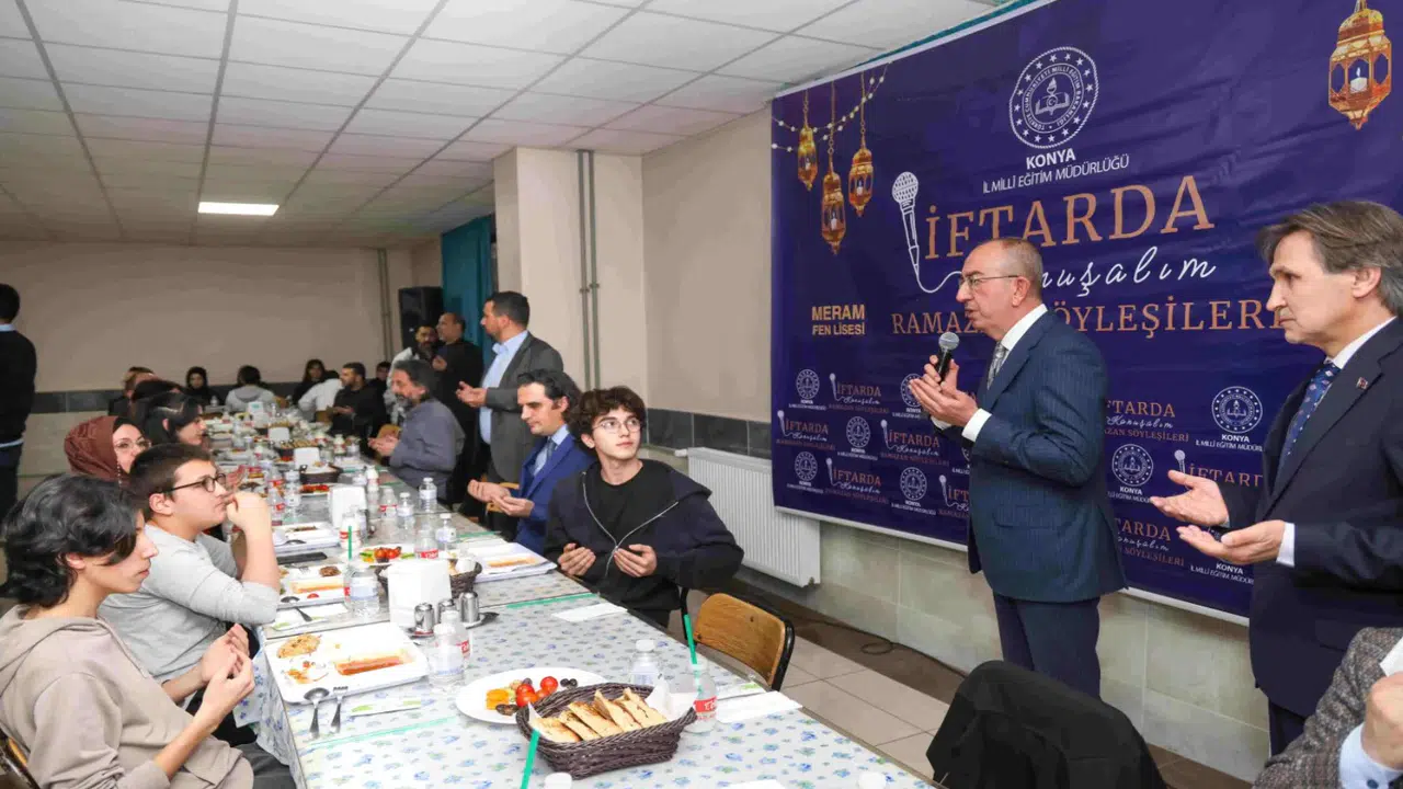 İftar sonrasında gençlere hitap eden Başkan Kavuş, konuşmasında tüm öğrencilere başarılar diledi. Meram Fen Lisesi iftarının kendileri için bir gelenek haline geldiğini belirten Başkan Kavuş, bu yıl iftara daha önce bu okuldan mezun olan önemli isimlerle katılmış olmanın mutluluğunu yaşadığını belirtti. Türkiye’nin sayılı okullarından olan Meram Fen Lisesi öğrencilerinin akademik başarılarıyla ülkenin yarınlarına damga vurduğunu ifade etti ve “Gençlerimizin bu başarıları bizlerin en büyük gururudur” diye konuştu.