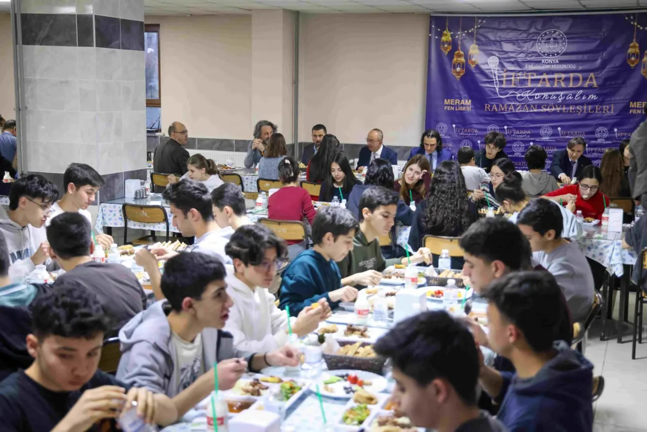 Mustafa Kavuş, her Ramazan ayında olduğu gibi bu Ramazan’da da Meram Fen Lisesi öğrencileriyle iftar sofrasında bir araya geldi. Türkiye’nin en seçkin eğitim kurumları arasında yer alan Meram Fen Lisesi’nde yatılı olarak eğitim gören gençlerle buluşan Başkan Kavuş, Ramazan’ın güzelliğini bu kez de öğrencilerle birlikte yaşadı. Bu anlamlı programda Cumhurbaşkanlığı Strateji ve Bütçe Başkan Yardımcısı Kutluhan Taşkın’da Başkan Kavuş’a eşlik etti.