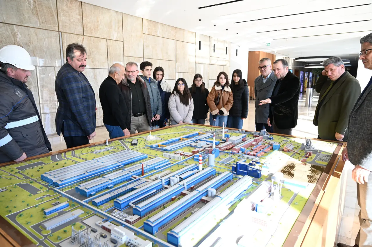 Belediye Başkanı Hasan Ustaoğlu, İlçe Milli Eğitim Müdürü Nizamettin Doğan, Mahmut Esat Ortaokulu Müdürü Süleyman Boztepe, Sınıf Öğretmeni Murat Üneş, öğrenci Selma Beren Parıltı ve arkadaşları ile Eti Alüminyum Fabrikasına giderek kendilerini karşılayan Kutanoğlu ve Kanık’tan filtre sistemini yerinde inceleyerek son teknoloji kullanılan sistem hakkında bilgi aldı.