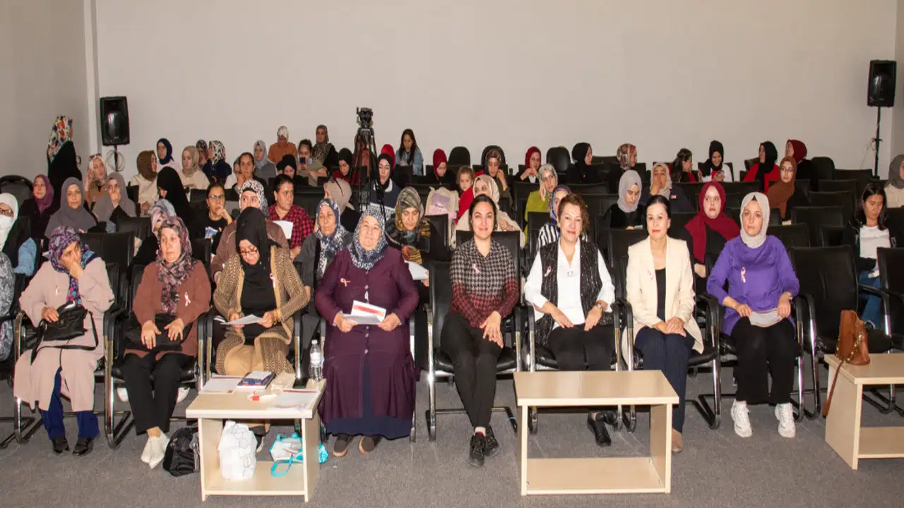 Konya Büyükşehir Belediyesi Yaygın Eğitim Şube Müdürlüğü ve Mümine Hatun Aile Sanat ve Eğitim Merkezi Hanımlar Lokali katkılarıyla hazırlanan seminerde katılımcılara meme kanseriyle mücadelede yapılacak yöntemler anlatıldı.