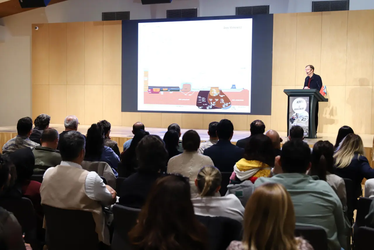 Yaklaşık 10 bin yıllık geçmişe sahip Çatalhöyük’ün ve kazı çalışmalarının tarihçesini anlatan Prof. Dr. Hodder, Çatalhöyük halkının sanat anlamında ileri bir toplum olduğunu dile getirerek, yaptıkları çalışmalara destek veren Konya Büyükşehir Belediyesi'ne teşekkür etti.