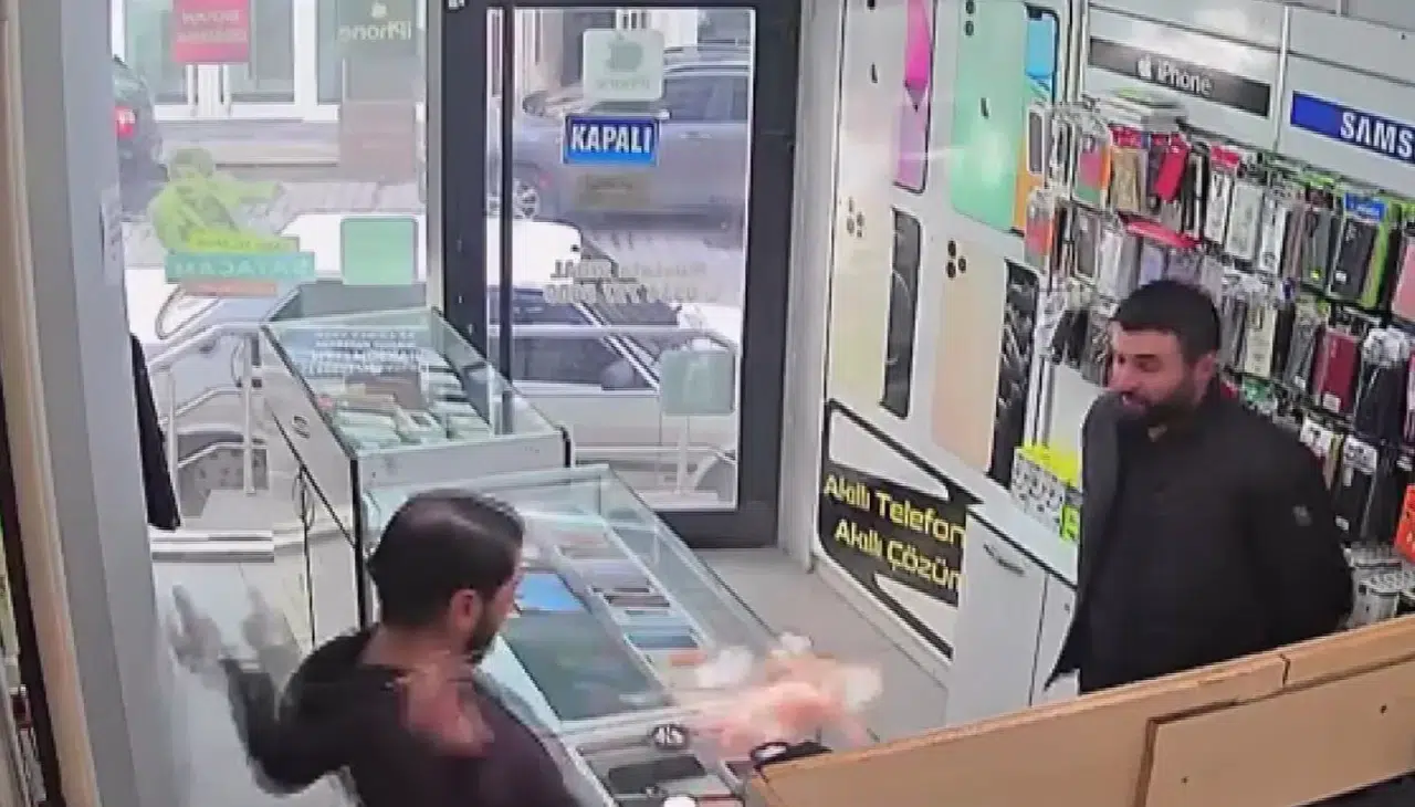 Olay, dün saat 15.00 sıralarında, Mustafa Sıdal'a (31) ait cep telefonu teknik servisinde meydana geldi. Mustafa Sıdal, bir cep telefonunu tamir ederken, bataryası patlayıp alev aldı. Sıdal da telefonu yere fırlattı. Alevler bir süre sonra kendiliğinden söndü. Yaşanan panik anı, iş yerinin güvenlik kamera kayıtlarına yansıdı.