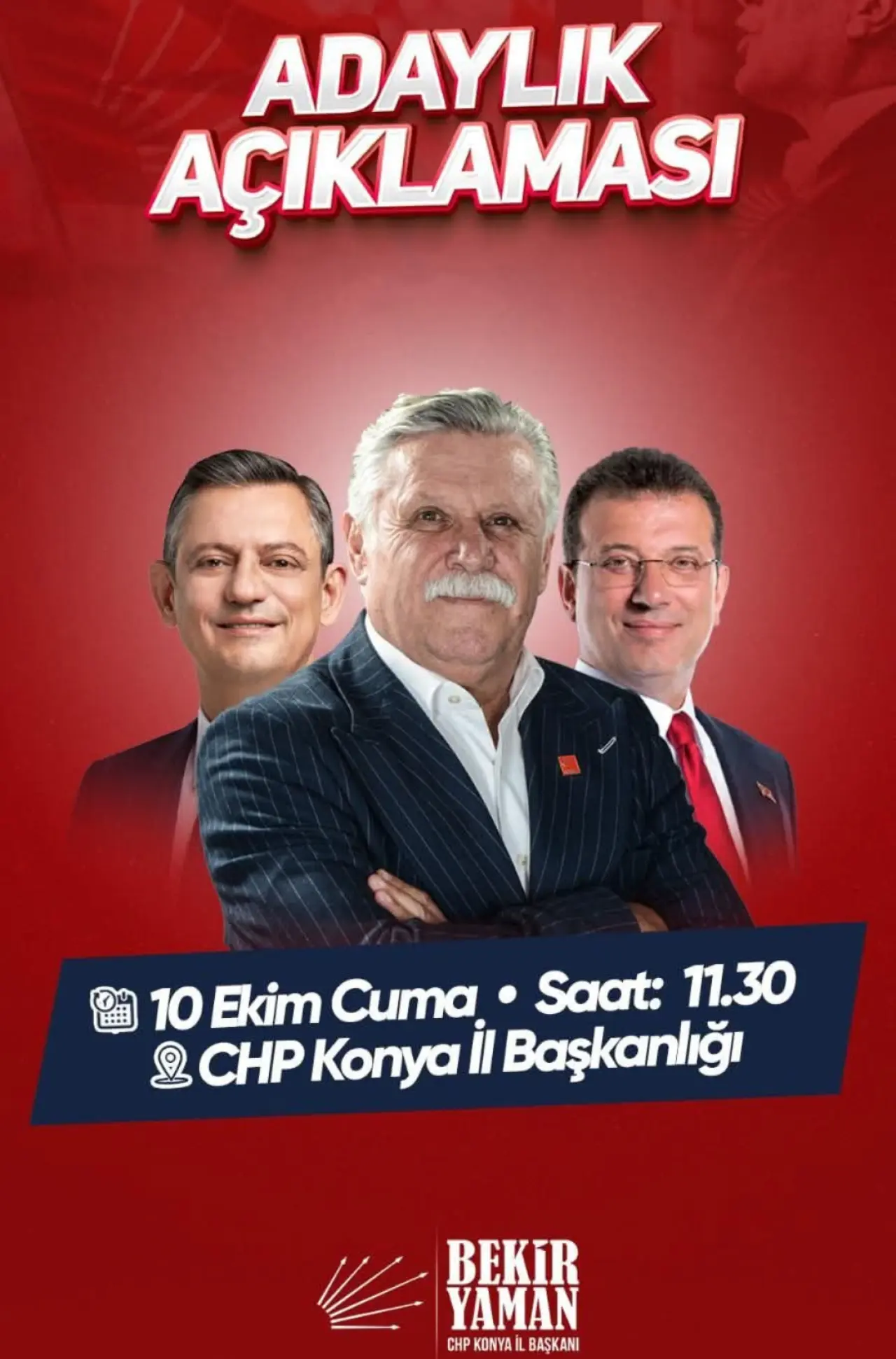 Cumhuriyet Halk Partisi (CHP) Konya İl Başkanı Bekir Yaman, Konya İl Başkanlığı için yeniden aday olduğunu açıkladı.