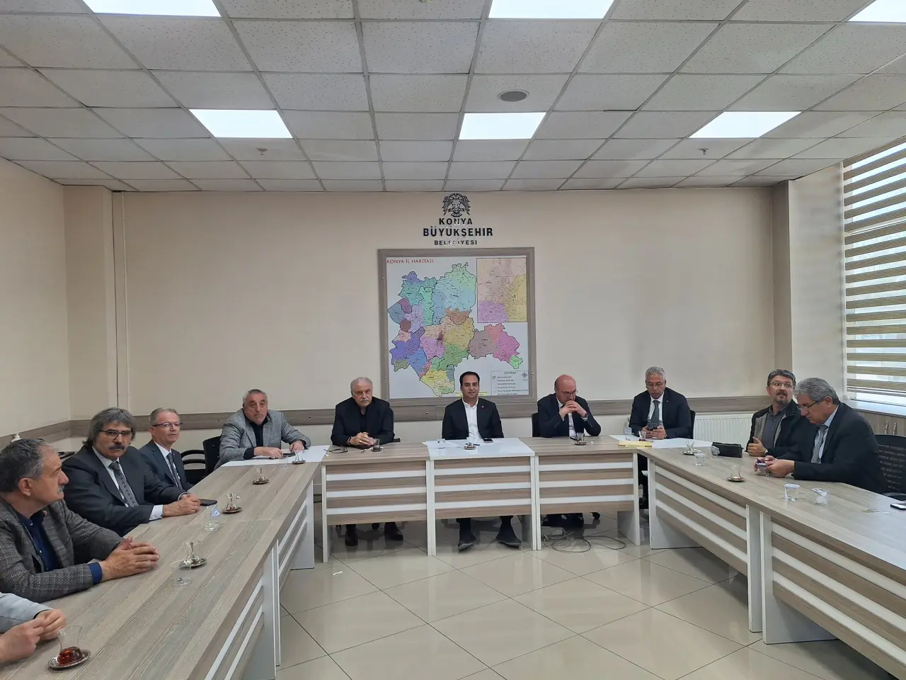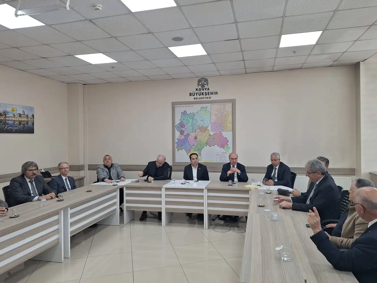 Konya Büyükşehir Belediyesi’nde düzenlenen toplantıya; Akşehir Belediye Başkanı Nuri Köksal, Ereğli Belediye Başkanı Umut Akpınar, Tuzlukçu Belediye Başkanı Nurettin Akbuğa ve Cihanbeyli Belediye Başkanı Fırat Kızılkaya ile birlikte Büyükşehir Belediye Meclis üyeleri katıldı.