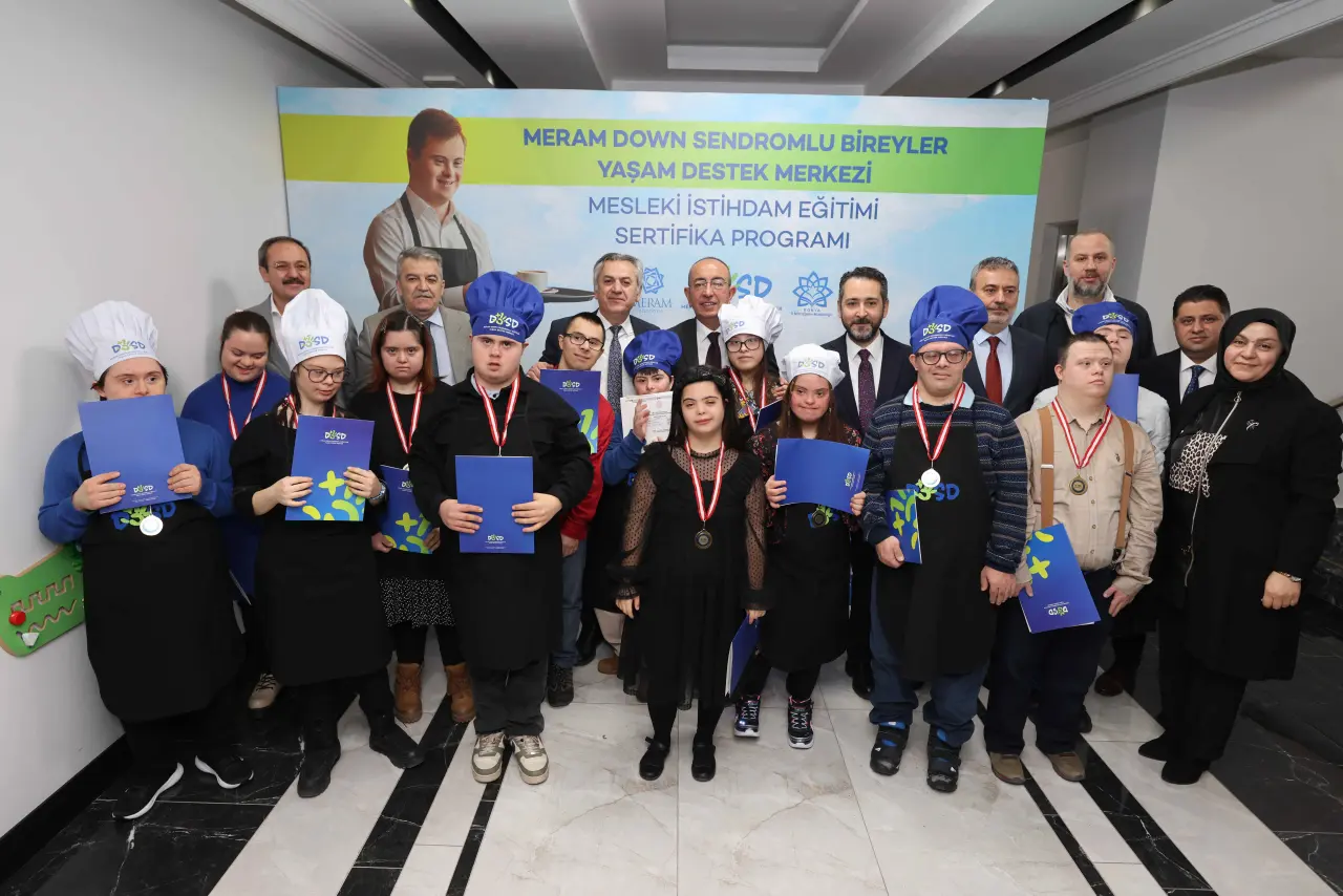 DOSD Meram bünyesinde 13 Ekim – 20 Ocak tarihleri arasında gerçekleştirilen eğitim programı, toplam 274 saat sürdü. Programa 16 yaş ve üzeri 18 özel birey katılırken, 16 kursiyer eğitimi başarıyla tamamlayarak sertifika almaya hak kazandı. Eğitim süresince katılımcılara; servis hizmetleri, mesleki uygulamalar, iş disiplini ve iletişim becerileri gibi iş hayatına doğrudan katkı sunacak teorik ve pratik bilgiler aktarıldı. Bu eğitim, yalnızca bir meslek kazandırma süreci olmanın ötesine geçerek, down sendromlu bireylerin sosyal hayata katılımını güçlendiren, öz güvenlerini artıran ve “üretebilirim” duygusunu pekiştiren önemli bir adım oldu.