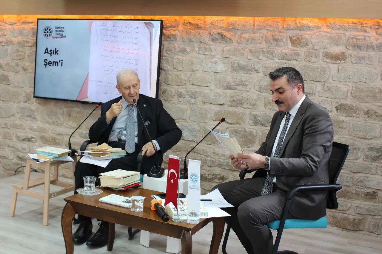 “Bugün biz sadece aramızdan ayrılan merhum ve merhume şairlerimizden ancak bir bölümünü sizlere takdim edebileceğiz. Aşık Şemi’den Aşık Diyari’ye, Bekir Sıtkı Erdoğan’dan Feyzi Halıcı’ya kadar bu şehre nefes olan isimleri anmak bir vefa borcudur. Mesela Aşık Şemi, bizim Çaybaşı Caddesi'nin sonunda, Aksinne’nin beş yol ağzındaki o iki katlı evde yaşamıştır; ben onun torununun torunuyla arkadaşlık ettim. Feyzi Halıcı abimiz ise Konya folklorüne, şiirine ve Gazeteciler Cemiyeti’ne eli, gönlü değmiş müstesna bir isimdi. Bu isimlerin her biri Konya’nın sokaklarını, kültürünü ve insanını şiirlerine ilmek ilmek işlemiş değerlerimizdir.” ifadelerini kullandı.