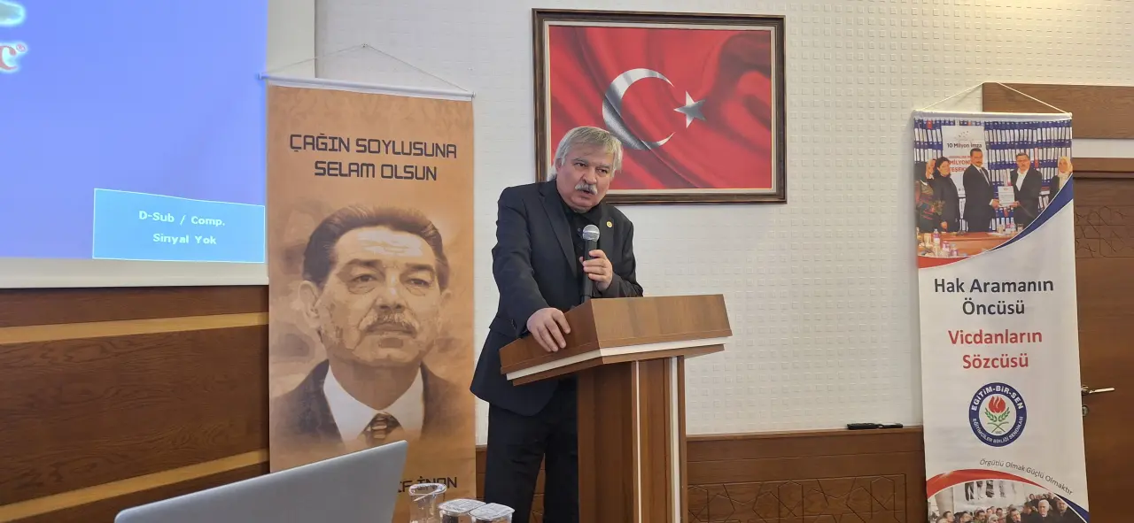 Toplantıda konuşan Eğitim-Bir-Sen Konya 2 No’lu Şube Başkanı Doç. Dr. Halil İbrahim Çelik, Eğitim-Bir-Sen’in yalnızca bir sendika değil, kalıcı işler ve kadim değerler üzerine kurulu bir mücadele hareketi olduğunu vurguladı. Çelik, “Eğitim-Bir-Sen, kurucu genel başkanımız Mehmet Akif İnan tarafından hem üyelerinin özlük ve özgürlük mücadelesini sürdürmek hem de insanlığın yeryüzündeki varoluş gayesine hizmet etmek üzere kurulmuştur. Bu sorumluluğu Konya 2 No’lu Şube Başkanı olarak taşımaktan onur duyuyorum” dedi.