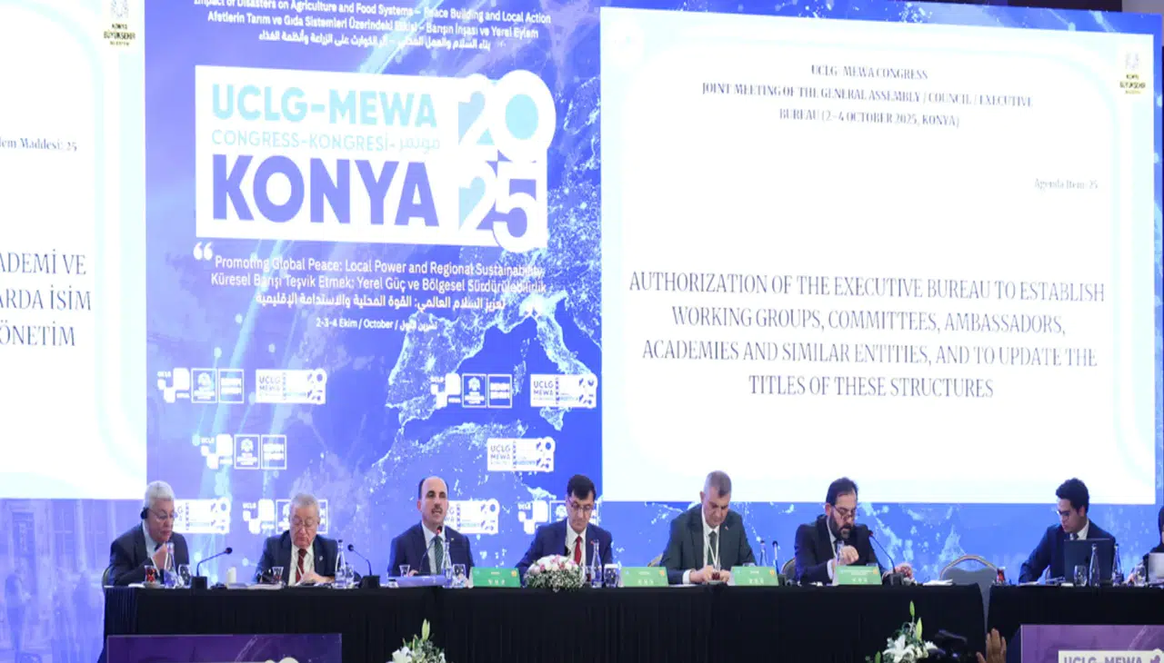 Konya Büyükşehir Belediyesi’nin ev sahipliğinde düzenlenen Birleşmiş Kentler ve Yerel Yönetimler Orta Doğu ve Batı Asya Teşkilatı (UCLG-MEWA) Kongresi’nde İsrail’de tutuklu bulunan Filistin El-Halil Belediye Başkanı Tayseer Abu Sneineh, oy birliğiyle yeni dönemde de UCLG-MEWA Başkanı seçildi.