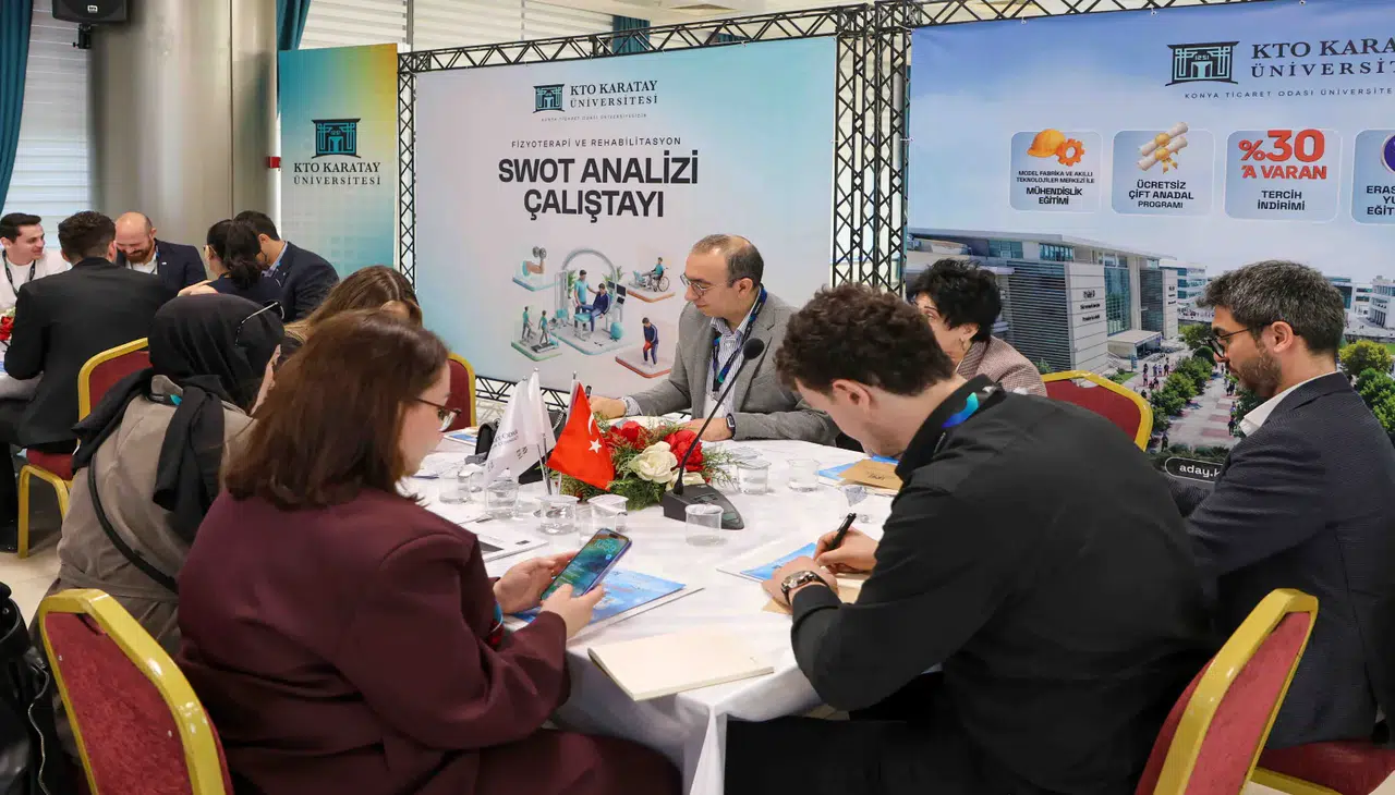 KTO Karatay Üniversitesi Sağlık Bilimleri Fakültesi Fizyoterapi ve Rehabilitasyon Bölümü tarafından düzenlenen “I. Fizyoterapi ve Rehabilitasyon SWOT Analizi Çalıştayı”nda, güçlü yönlerin pekiştirilmesi, gelişime açık alanların belirlenmesi ve sürdürülebilir kalite süreçlerinin oluşturulmasına yönelik değerlendirmeler yapıldı. Çalıştayın açılış programı KTO Karatay Üniversitesi Rektörü Prof. Dr. Fevzi Rifat Ortaç, Sağlık Bilimleri Fakültesi Dekanı Prof. Dr. Filiz Erbay, Fizyoterapi ve Rehabilitasyon Bölüm Başkanı Dr. Öğr. Üyesi Özlem Akkoyun Sert’in yanı sıra Sağlık Bilimleri Üniversitesi, İzmir Katip Çelebi Üniversitesi, Necmettin Erbakan Üniversitesi, Hacettepe Üniversitesi, Selçuk Üniversitesi, Karamanoğlu Mehmetbey Üniversitesi ve Gazi Üniversitesi akademisyenleri, fizyoterapistler ve öğrencilerin katılımıyla gerçekleşti.