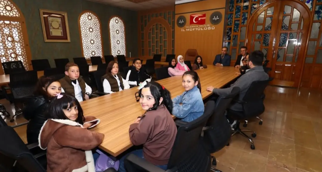 Tuvallerde Kalan Umut kapsamında Konya’da misafir edilen Gazze’li çocuklar, Konya İl Müftülüğünü ziyaret etti.