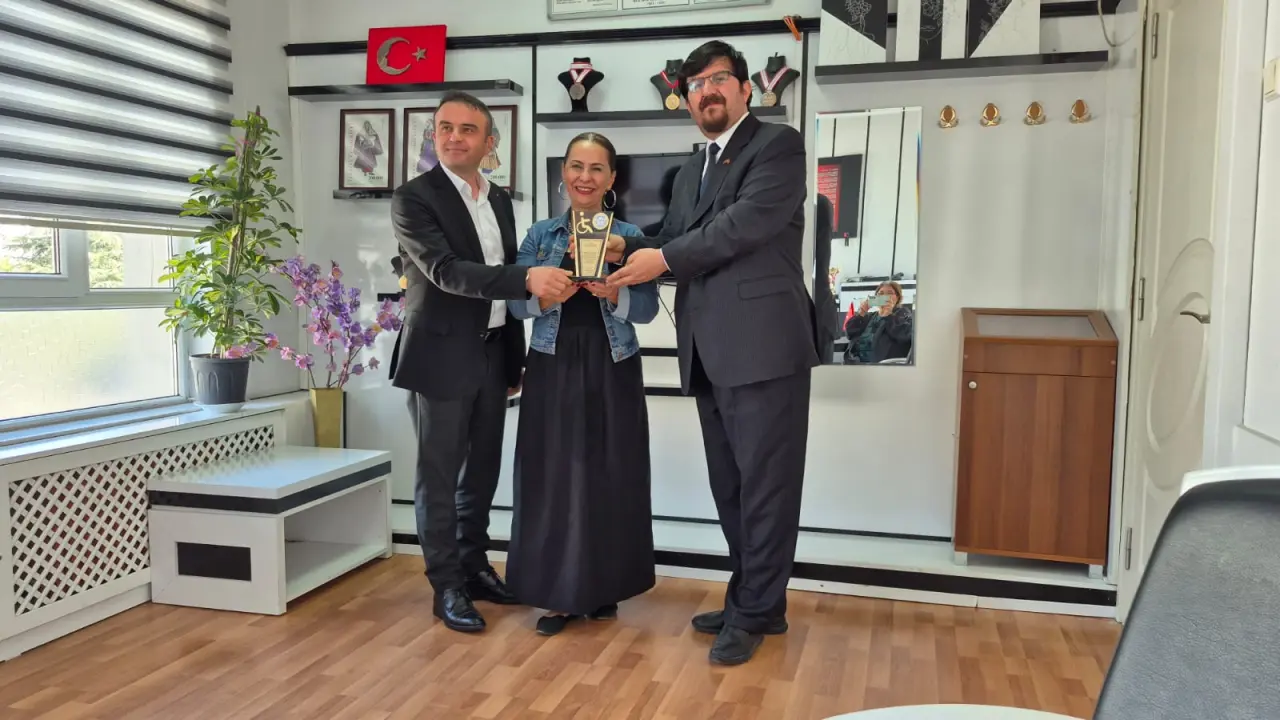 Gönül Gözü Derneği Genel Başkanı Devriş Ahmet Şahin, 24 Kasım Öğretmenler Günü münasebetiyle Karatay Özel Eğitim Meslek Okulu öğretmenlerinden Deniz Aras’ın Öğretmenler Günü’nü kutlayarak kendisine Engelli Dostu Eğitimci plaketini takdim etti.