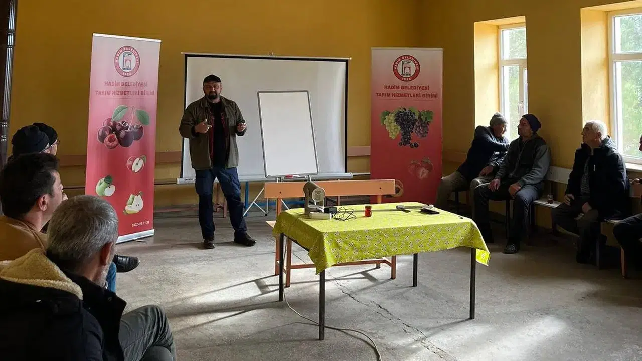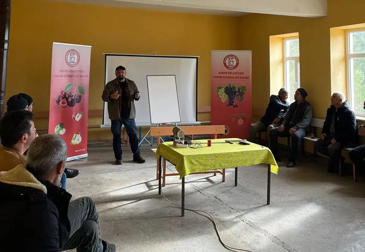 Hadim Belediyesi Tarımsal Hizmetler Birimi tarafından verilen seminerde; meyvecilikte doğru uygulamalar, budama teknikleri ve bakım süreçleri detaylı şekilde ele alındı. Ziraat Mühendisi Mevlüt Sucu, üreticilere pratik bilgiler aktararak verimi artıracak yöntemleri paylaştı.