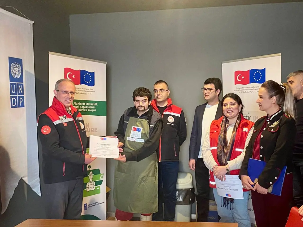 Avrupa Birliği tarafından desteklenen, Bakanlık, Türk Kızılayı ve Birleşmiş Milletler Kalkınma Programı (UNDP) koordinasyonunda yürütülen “Kırsal Alanlarda Mevsimlik Tarımsal Kapasitelerin Güçlendirilmesi Projesi (INSURE)” kapsamında düzenlenen Et İşleme Elemanı Kursu başarıyla tamamlandı.