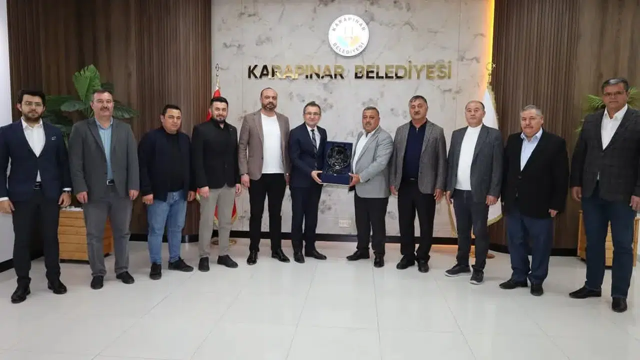 Karapınar Belediye Başkanı İbrahim Önal, makamında önemli konukları ağırladı. Başkan Önal, Konya Ticaret Borsası Başkanı Ahmet Ulusoy ve Yönetim Kurulu Üyeleri, Konya Teknik Üniversitesi Öğretim Görevlisi Maden Mühendisi Kemal Doğan, Konya KARDER Başkanı Fikret Danış ve Yönetim Kurulu Üyeleri ile Selçuk Üniversitesi Aydoğanlar Meslek Yüksekokulu Müdürü Prof. Dr. Özcan Barış Çitil’i belediyede misafir etti.