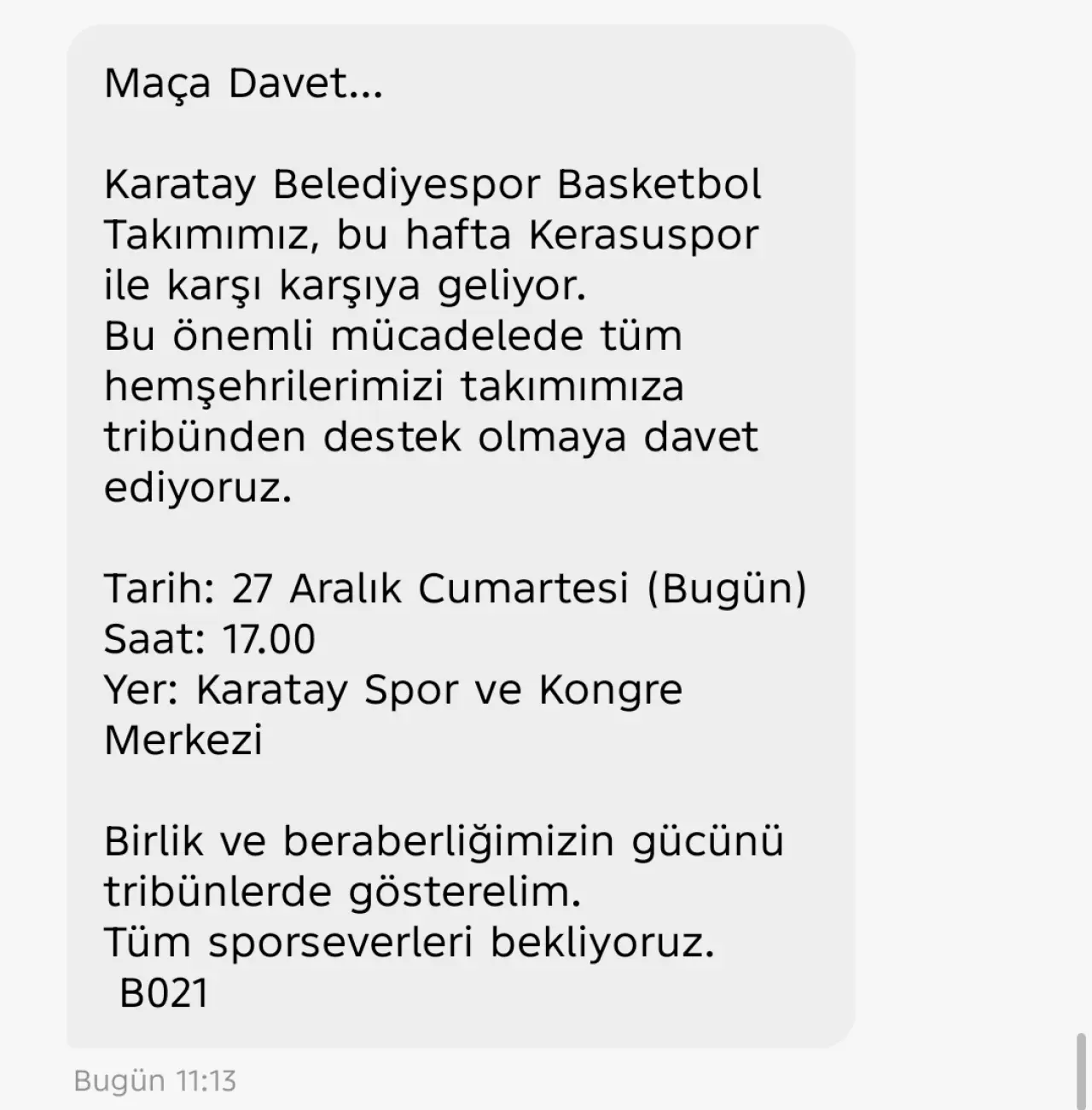 Karatay Belediyesi tarafından yapılan çağrıda, birlik ve beraberliğin tribünlerde hissedilmesi gerektiği vurgulanarak, tüm hemşehriler ve basketbol severler bu heyecana ortak olmaya davet edildi.
