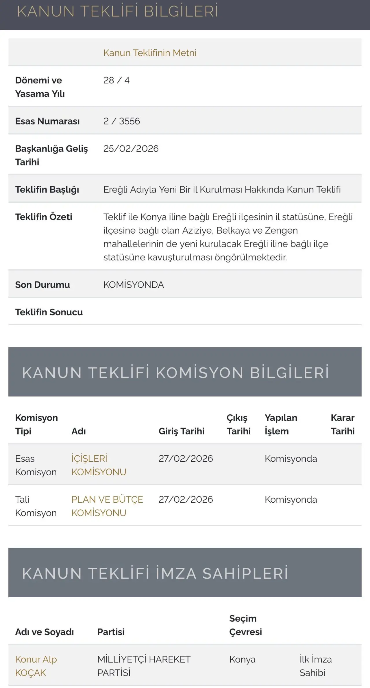 MHP Milletvekili Koçak tarafından TBMM’ye sunulan düzenlemenin, kamu hizmetlerine erişimi hızlandıracağı, yatırım süreçlerini kolaylaştıracağı ve Ereğli’nin ekonomik potansiyelini daha güçlü bir idarî yapı altında değerlendirme imkânı sağlayacağı ifade ediliyor.