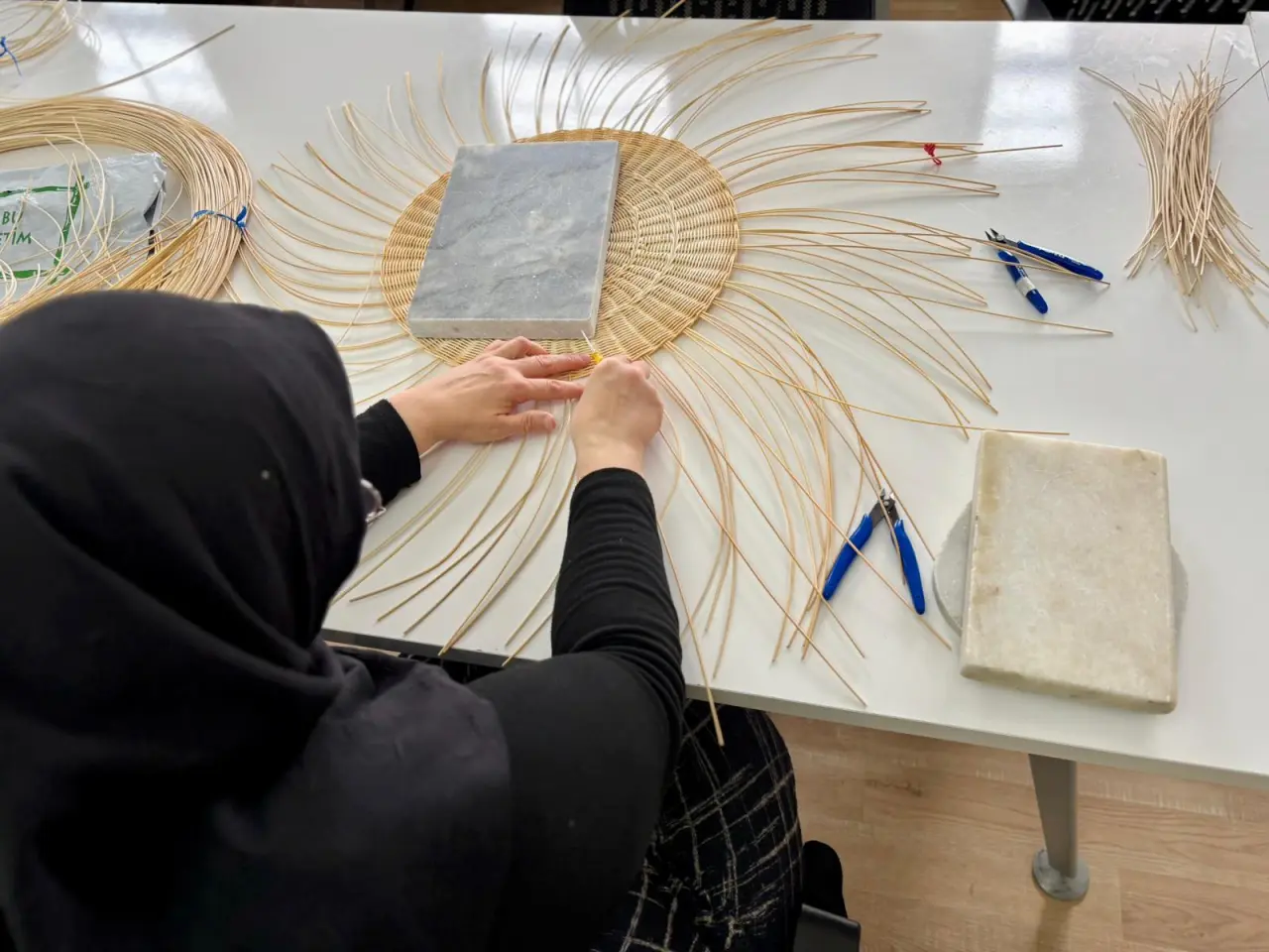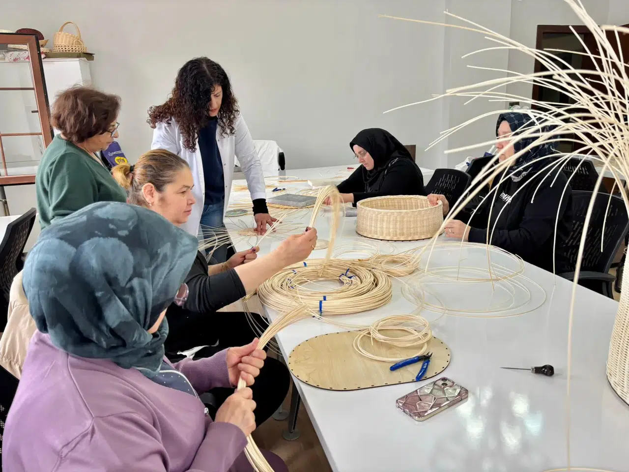 Kurs kapsamında katılımcılar, rattan örme tekniklerini öğrenerek hem dayanıklı hem de dekoratif ürünler ortaya çıkarıyor. El emeğiyle şekillenen ürünler, yaşam alanlarına doğal bir şıklık katıyor.