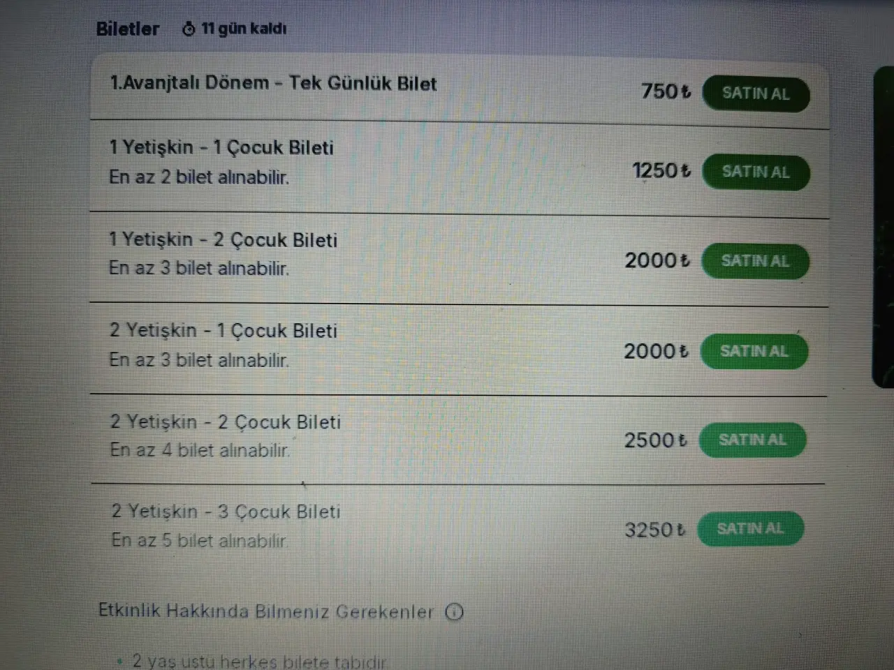 2 yaş ve üzeri tüm katılımcılar bilete tabidir.
