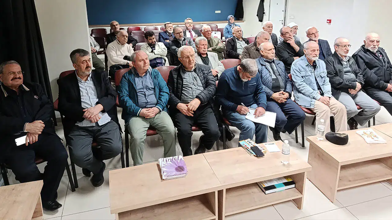 Program sonunda Aydınlar Ocağı Başkanı Dr. Mustafa Güçlü ve emekli müftü Mehmet Emin Parlaktürk günün hatırası olarak Ahmet Akçael’e kitap takdim etti.
