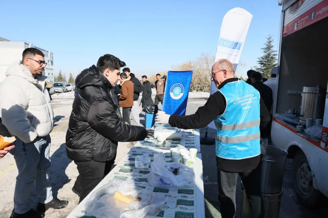 Ereğli Belediyesi, final haftası dolayısıyla üniversite öğrencilerini yalnız bırakmadı. Necmettin Erbakan Üniversitesi Ereğli Eğitim Fakültesi önünde kurulan ikram noktasında, tüm üniversite öğrencilerine çorba ve çay ikramında bulunuldu.