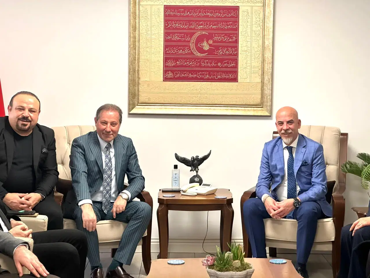Konya Berberler ve Kuaförler Esnaf ve Sanatkârlar Odası Başkanı Veli Baranok ve beraberindeki kıymetli kurul üyeleri, KONESOB Başkanı Muharrem Karabacak’ı ziyaret etti.
