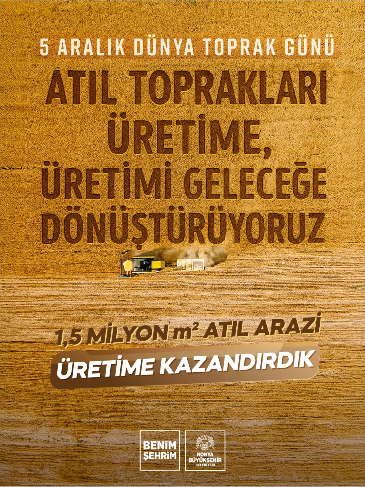 Konya Büyükşehir Belediyesi, 5 Aralık Dünya Toprak Günü dolayısıyla yayımladığı mesajda toprağın önemine dikkat çekti. “Atıl toprakları üretime, üretimi geleceğe dönüştürüyoruz” vurgusuyla paylaşılan açıklamada, toprağın bereketiyle hayatın sürdüğüne işaret edildi. Belediye, tarımsal üretimi artırmak, toprakları daha verimli hale getirmek ve geleceğe daha güçlü bir tarım altyapısı bırakmak için yürüttüğü çalışmalara dikkat çekerek, üreticilerin her zaman yanında olduklarını belirtti.