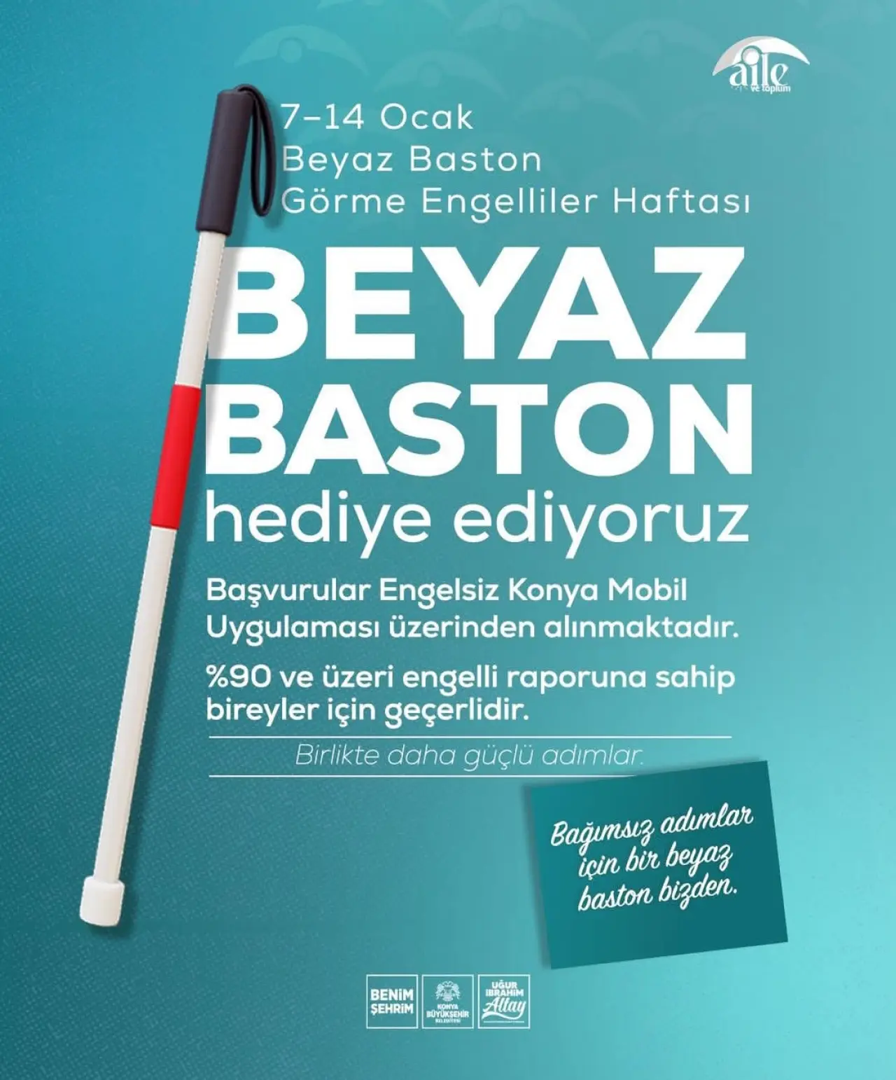 Paylaşımda ayrıca, “Bağımsız adımlar için bir beyaz baston bizden” mesajıyla toplumsal farkındalığa dikkat çekildi.