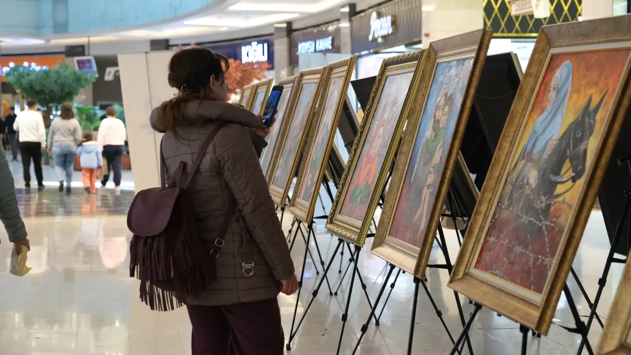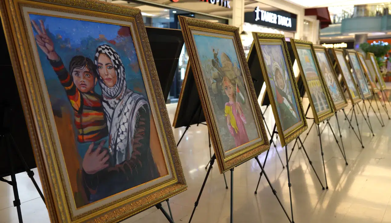 Konya’da misafir edilen 150 Filistinli çocuktan aralarında resim yapma yeteneği bulunanların eserlerinden oluşan resim sergisi, bir alışveriş merkezinde ziyarete açıldı. Çocukların duygu, düşünce ve yaşadıkları zorlukları sanat yoluyla ifade ettikleri birbirinden güzel 20 eserin yer aldığı sergi vatandaşlar tarafından da ilgiyle karşılandı.
