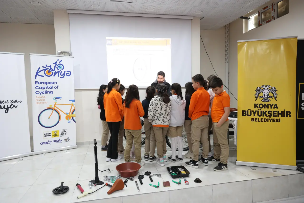 Konya Büyükşehir Belediyesi, anaokulu ve ilkokullarda öğrencilerin bisiklet konusunda daha fazla bilinçlenmesi ve farkındalık kazanması amacıyla çeşitli etkinlikler yürütüyor.