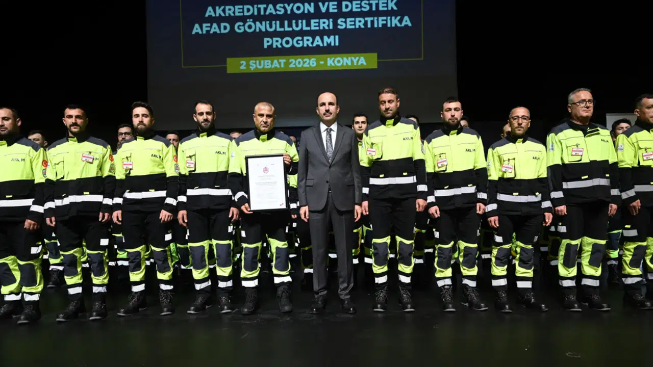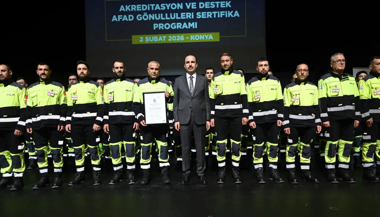 Konya Valisi İbrahim Akın ise afetlere karşı hazırlıklı olmanın, olay anında hızlı, koordineli ve doğru müdahaleyi mümkün kılacak güçlü iş birliğini tesis etmenin hayati önem taşıdığını dile getirerek, “Bu doğrultuda Konya’mızda kentsel arama kurtarma ve afetlerde acil barınma faaliyetleri kapsamında oluşturulan toplamda geçen yılla beraber 15 ekip, 621 kişiden oluşan ekiplerimiz, titiz bir çalışma ve eğitim sürecinin sonunda başarılı bir şekilde akredite edilmiştir. Akreditasyon süreci, afetlere hazırlıklı olma anlayışımızın, kurumsal disiplinimizin ve sorumluluk bilincimizin sahadaki somut karşılığını ortaya koymaktadır. Bu çerçevede tüm ekiplerimizin her türlü afet durumunda görev yapabilecek yüksek standartlara sahip yetkinlikte ve donanımda olduğunu özellikle vurgulamak istiyorum. Sertifika alan her bir gönüllümüzün afet anlarında toplumumuza karşı üstlendiği görevi aynı hassasiyet ve ciddiyetle sürdüreceğine yürekten inanıyor, başarılarının devamını diliyorum” dedi.