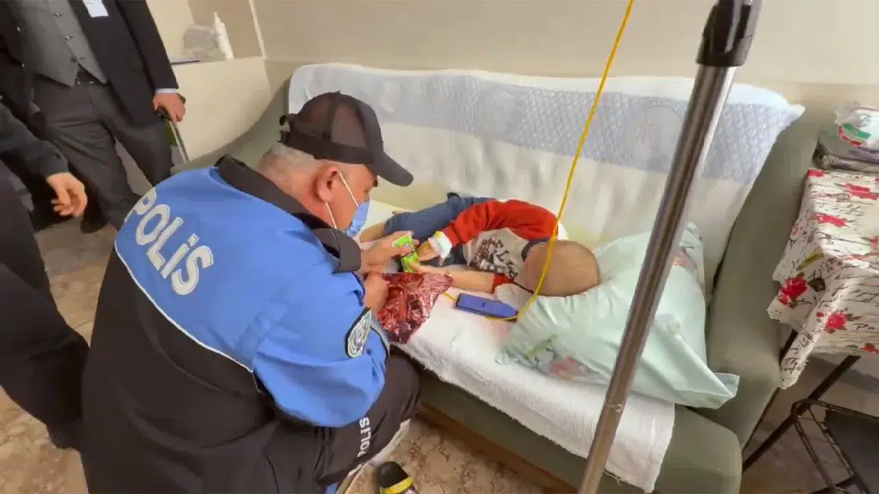 Ziyarette çocuklarla yakından ilgilenen polis ekipleri, onlara çeşitli hediyeler vererek moral oldu.