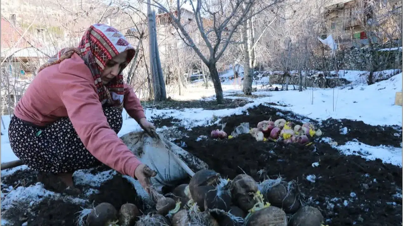 Konya’nın en fazla kar yağışı alan ilçelerinden Hadim’de, asırlardır sürdürülen geleneksel bir yöntem bugün hâlâ yaşamaya devam ediyor. İlçeye bağlı Gezlevi Mahallesi’nde vatandaşlar, kış aylarında sebzelerin tazeliğini korumak için ürünleri toprağın altına gömerek muhafaza ediyor.
