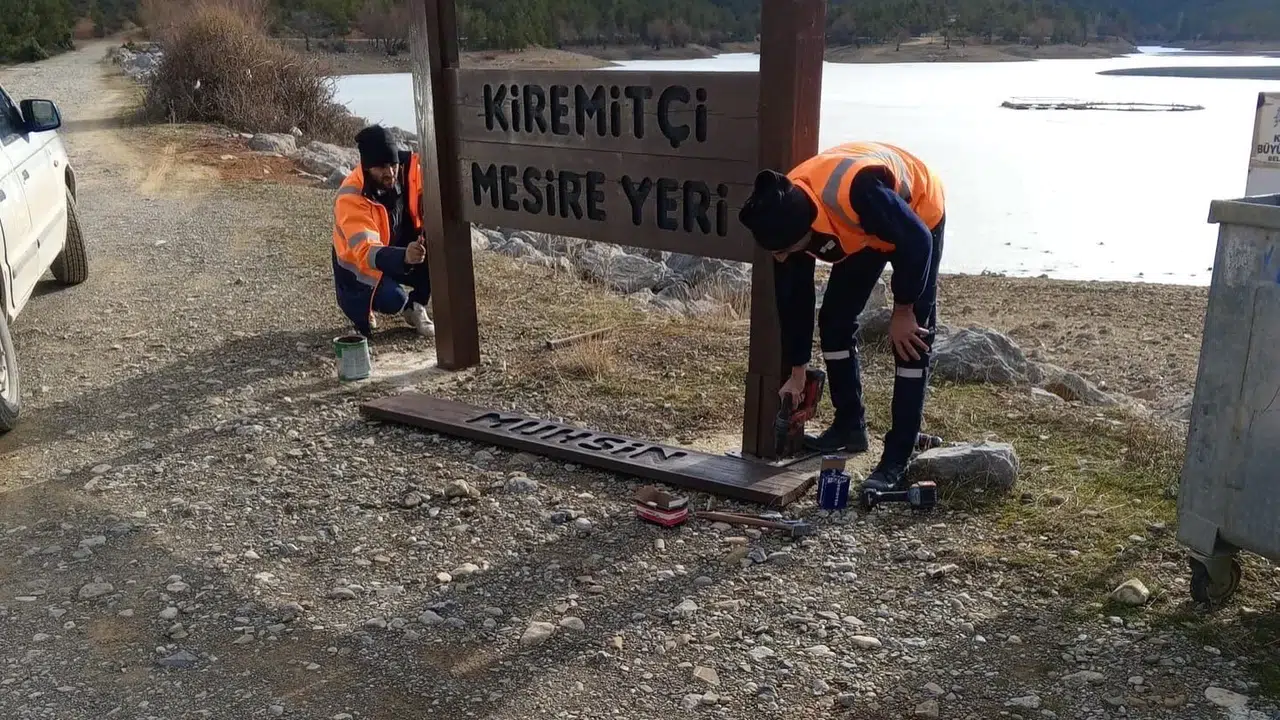 Seydişehir Belediyesi, Gökçehüyük Barajı’nda bulunan Şehit Komiser Yardımcısı Muhsin Kiremitçi Mesire Alanı tabelasının kimliği belirsiz kişiler tarafından tahrip edilmesinin ardından harekete geçti. Zarar gören tabela, belediye ekipleri tarafından yenilenerek yeniden yerine monte edildi.
