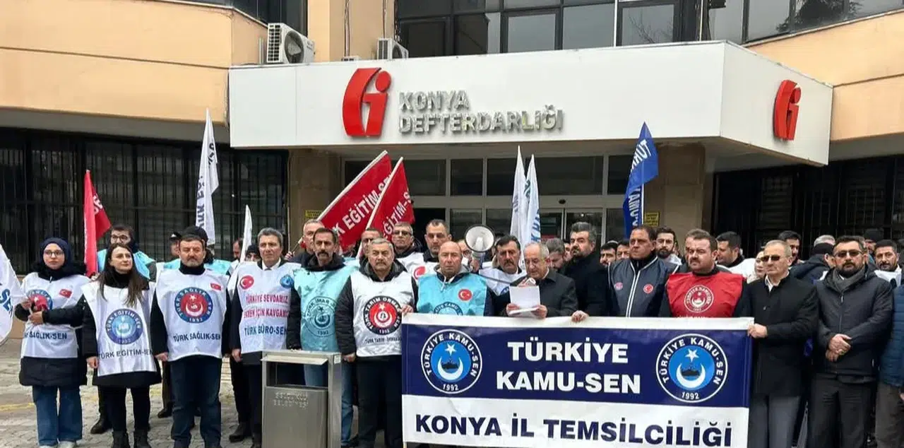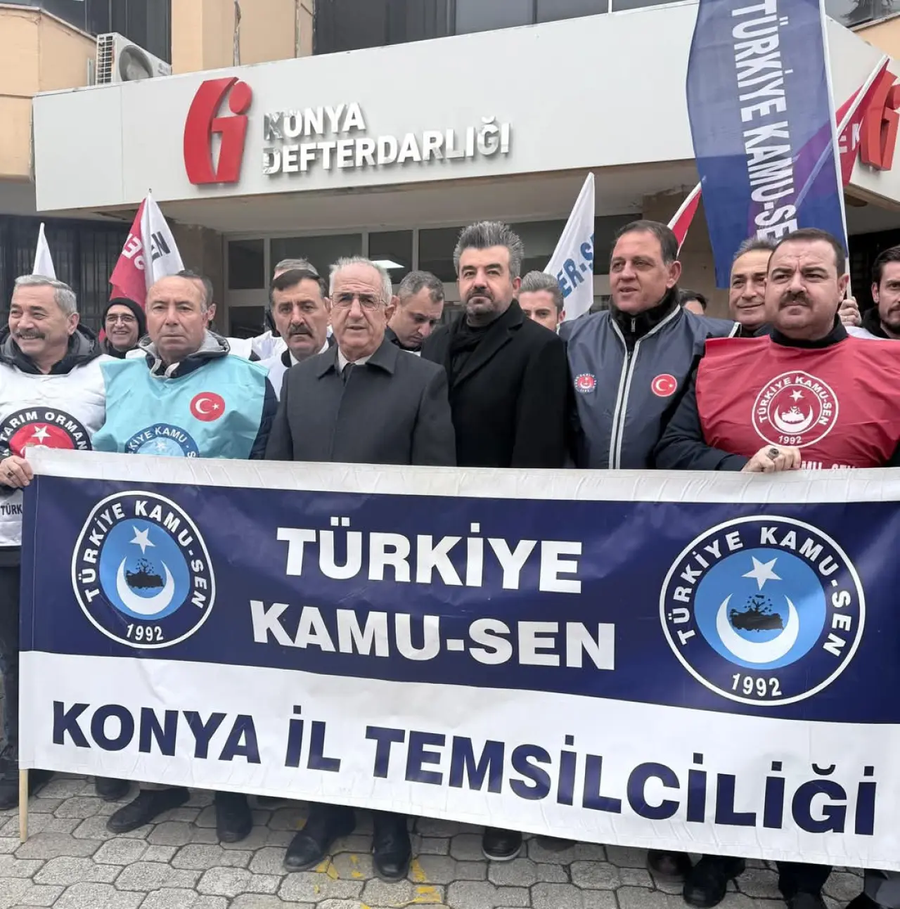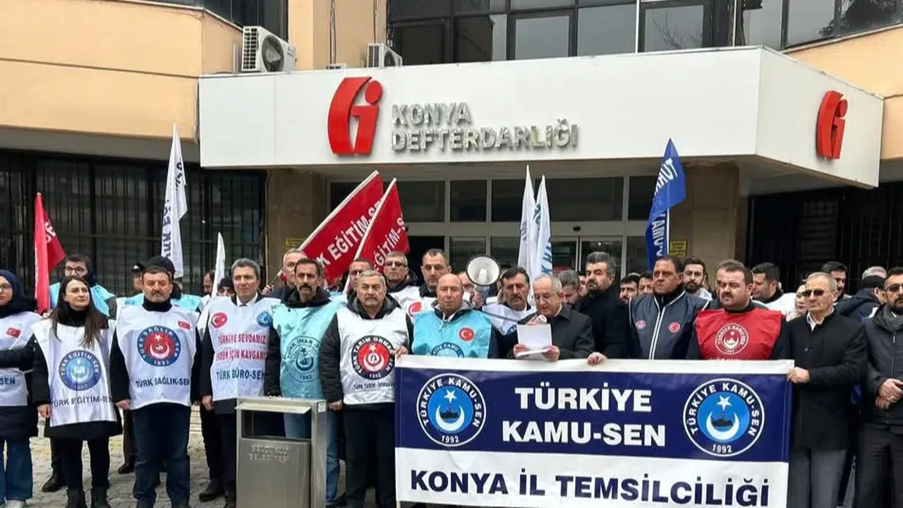 Türkiye Kamu-Sen, “Ücrette Hakkaniyet, Vergide Adalet, İstihdamda Güvence” talebiyle Konya Maliye Binası önünde basın açıklaması gerçekleştirdi. Açıklama, eş zamanlı olarak Türkiye genelindeki tüm illerde de yapıldı.