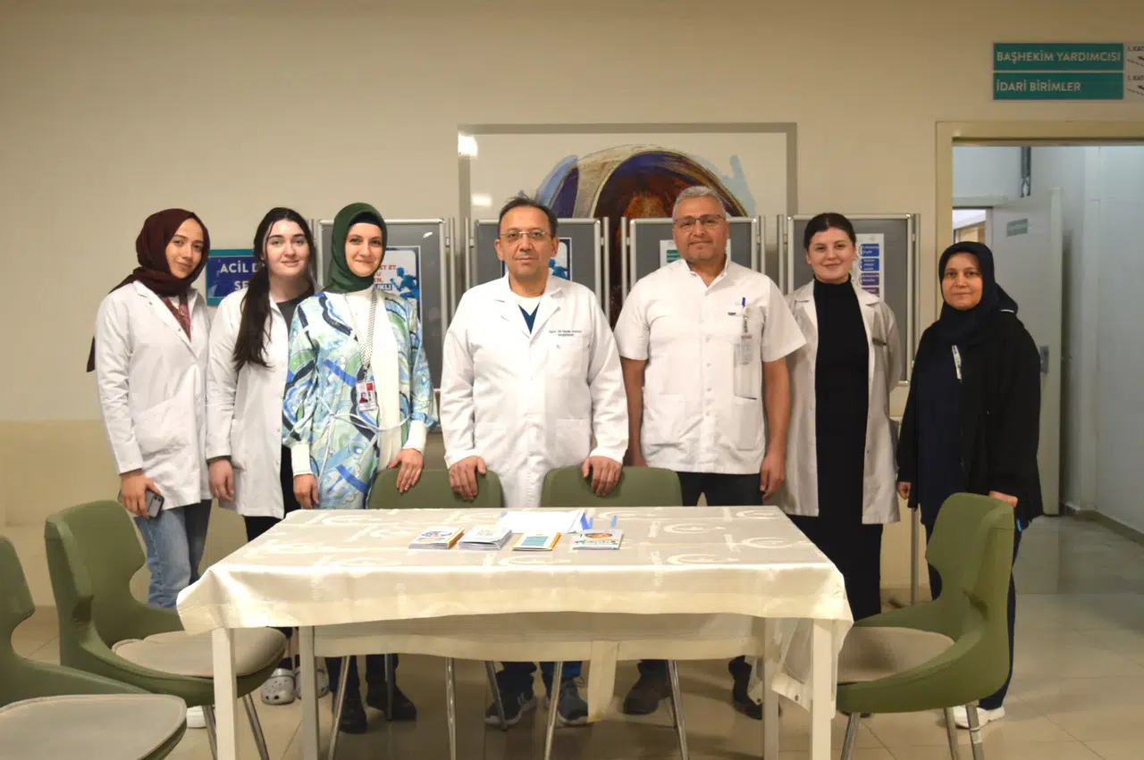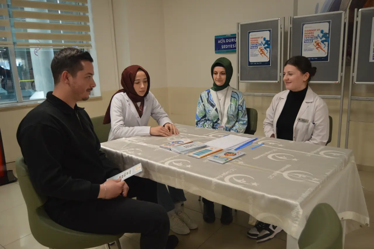 Hastanenin poliklinik katında kurulan “Hareket Et, Doğru Beslen, Sağlıklı Yaşa” temalı bilgilendirme standında, Ramazan ayında sağlıklı beslenme, doğru iftar ve sahur alışkanlıkları ile düzenli fiziksel aktivitenin önemi konusunda hasta ve hasta yakınlarına bilgiler sunuldu.