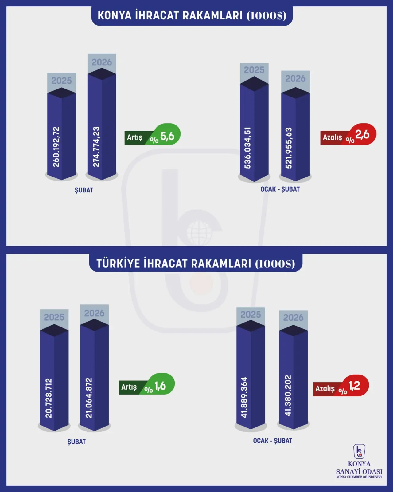 Aylık bazda kaydedilen bu artışın, Konya sanayisinin üretim gücünü ve dış pazarlardaki rekabet kabiliyetini bir kez daha ortaya koyduğu ifade edildi.
