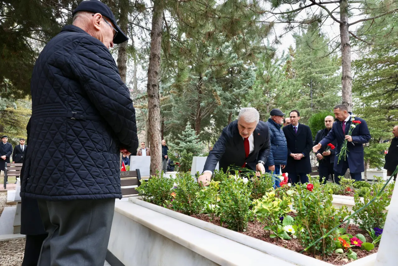 Konya Şehitliği'ndeki Şehitler Anıtı'na çelenkler sunuldu.