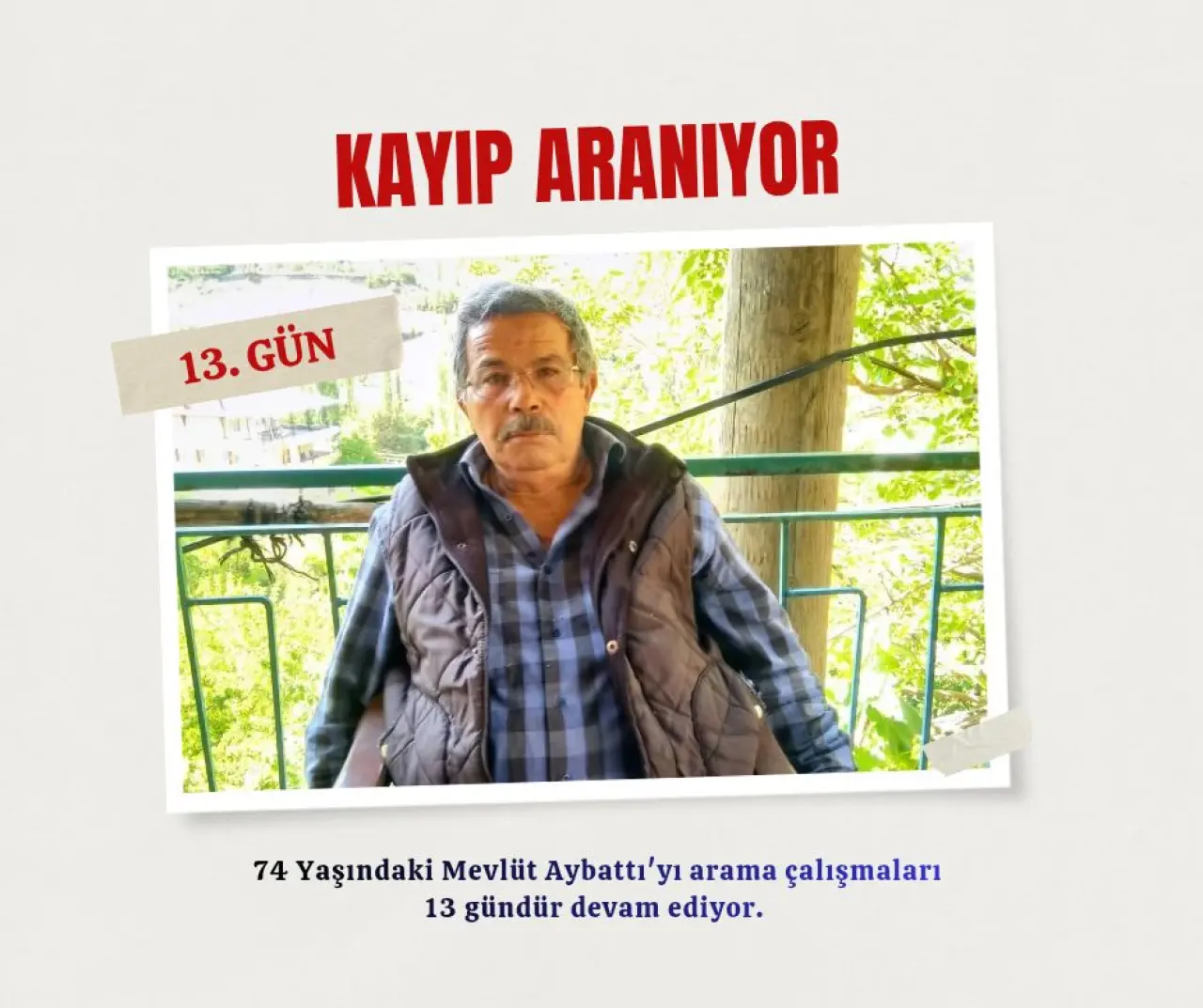 Hadim ilçesinde 13 gün önce kaybolan 74 yaşındaki Alzheimer hastası Mevlüt Aybattı’yı arama çalışmaları aralıksız devam ediyor.
